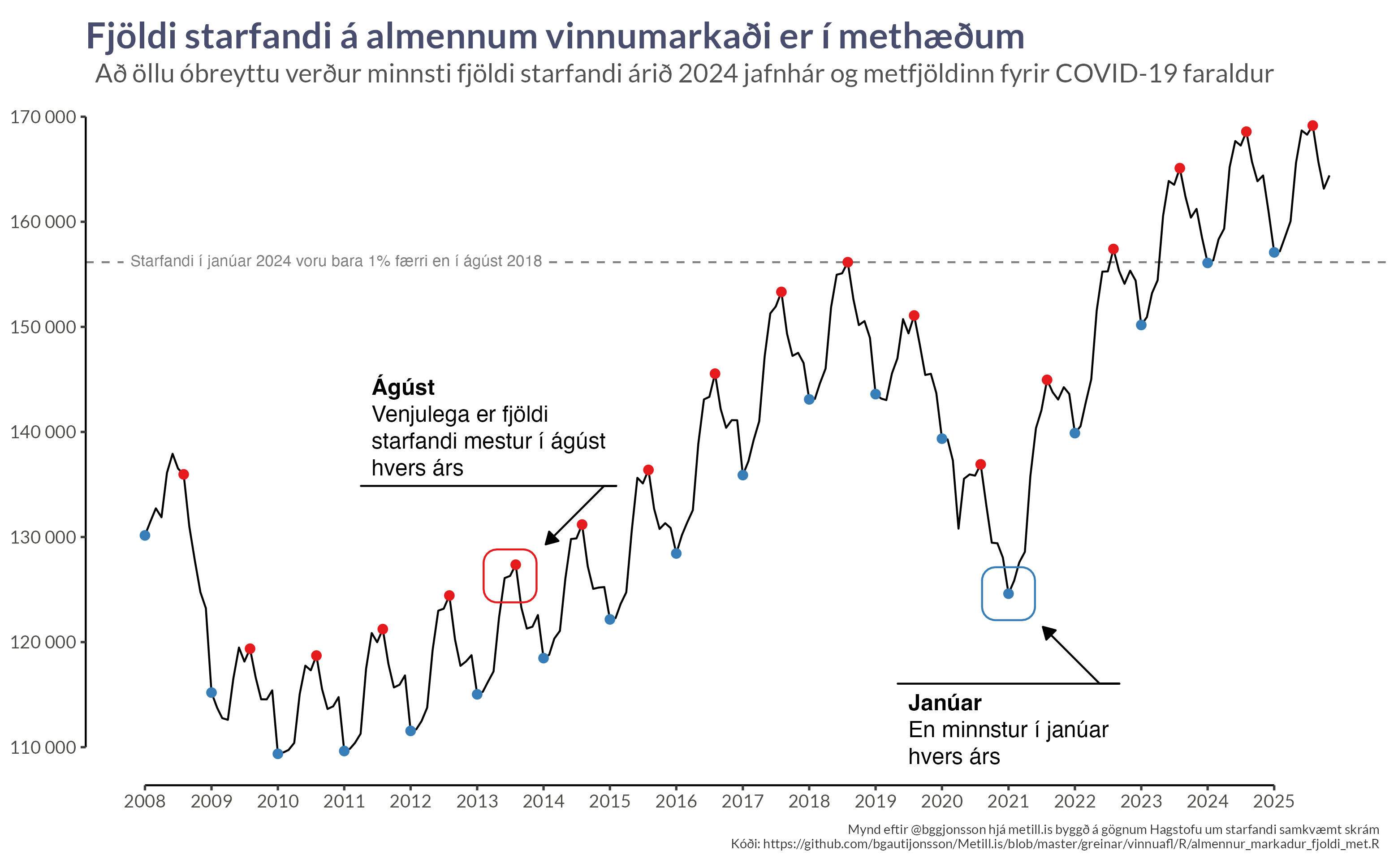 Fjöldi starfandi á almennum vinnumarkaði er í methæðum