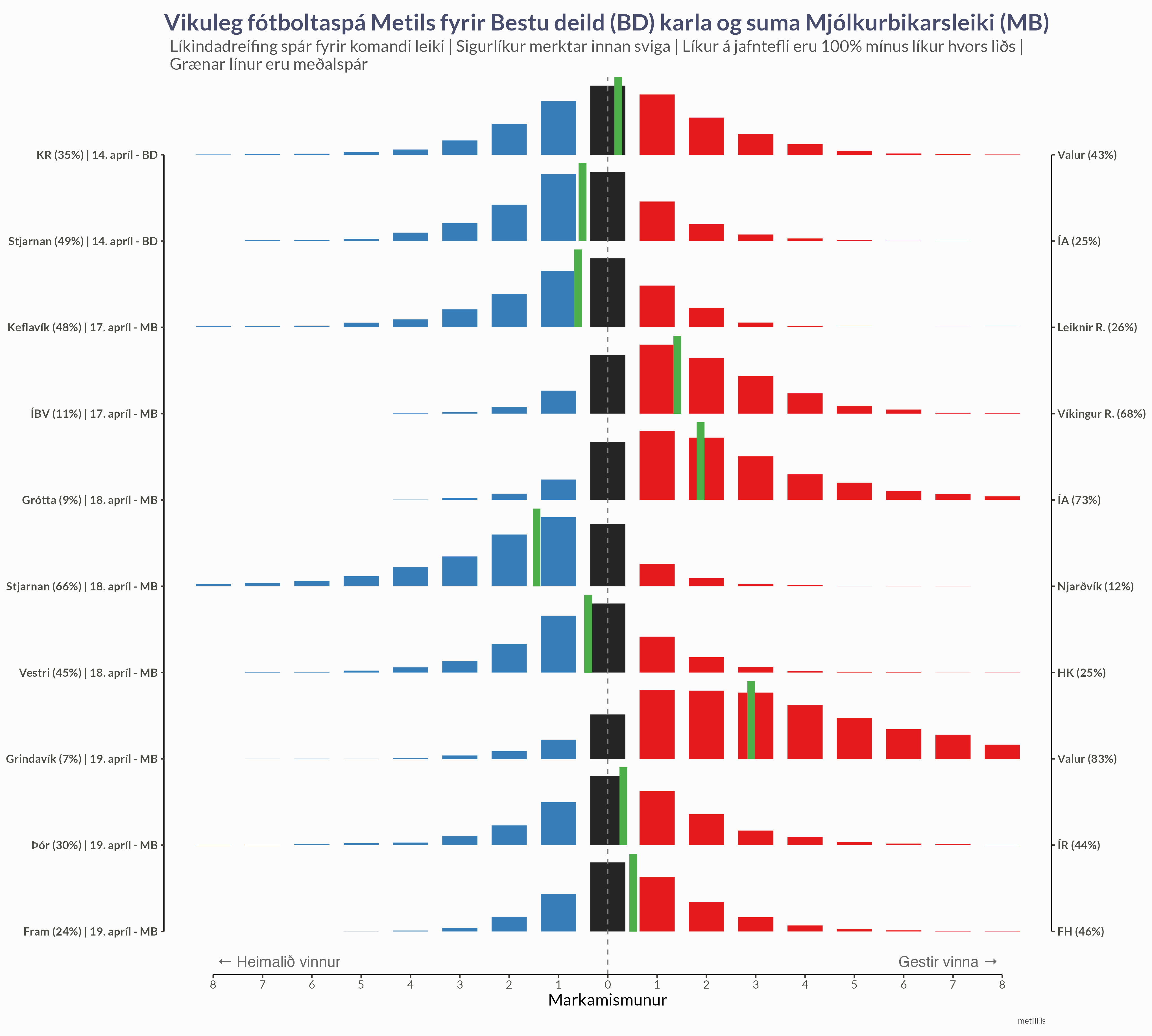 Metill notar Bayesian tölfræðilíkön til að spá fyrir um úrslit í íslenskum boltaíþróttum. Líkönin meta styrk hvers liðs og gefa líkindadreifingu fyrir væntanleg úrslit.