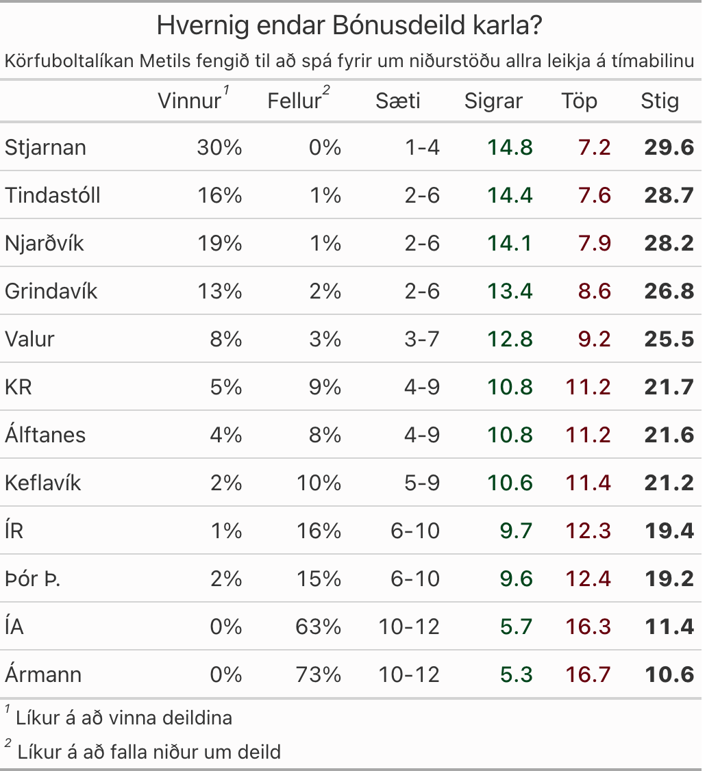 Spá um niðurstöðu deildarinnar