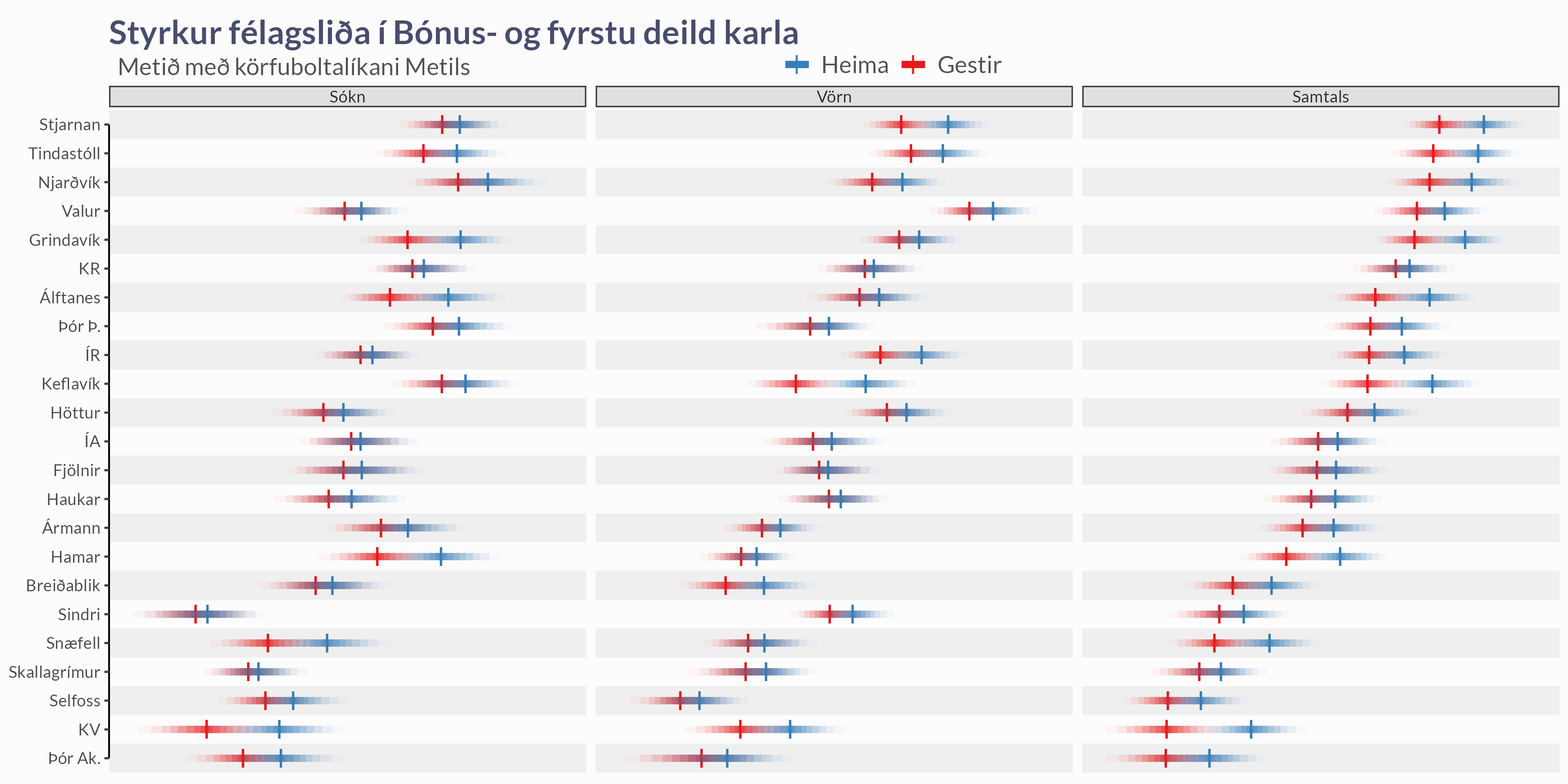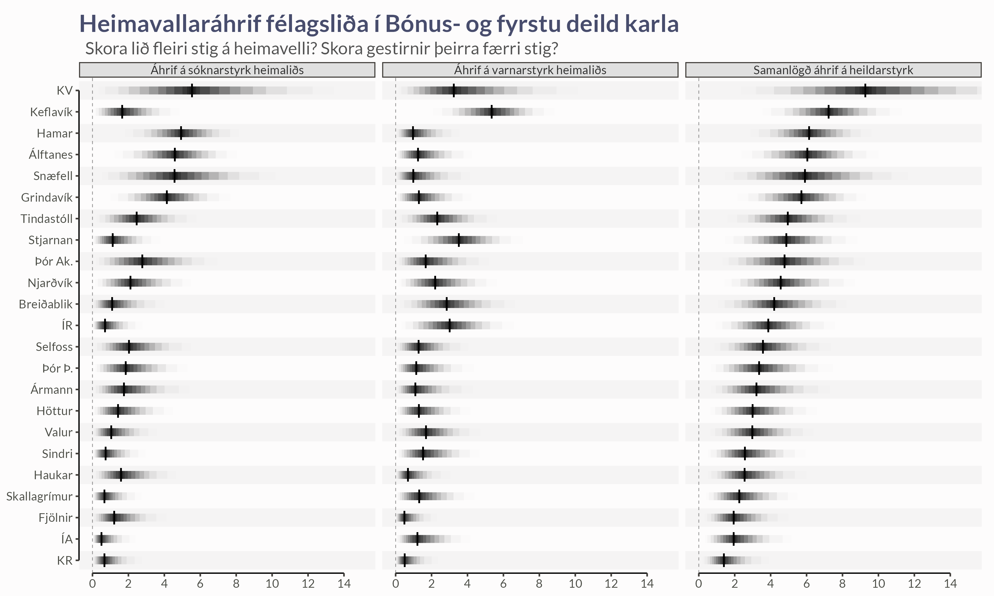Lið spila oftast betur á heimavelli. Hversu mikil eru áhrifin? Eru þau mismunandi milli liða? Eru áhrifin meiri þegar kemur að sóknarstyrk eða varnarstyrk?